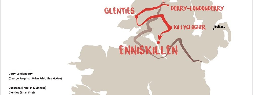 Under the umbrella of Ireland’s northern literary lands, Arts Over Borders is launching its own five year programme of cross-border artistic initiatives inspired by leading writers Samuel Beckett, Oscar Wilde and Brian Friel, all writers with links to the border counties. Featuring events in Donegal, Derry- Londonderry, Fermanagh and Tyrone, the programme will also highlight an east-west link with the new Samuel Beckett Biennale fielding experimental productions in Greystones, Wicklow, Folkstone and Reading.